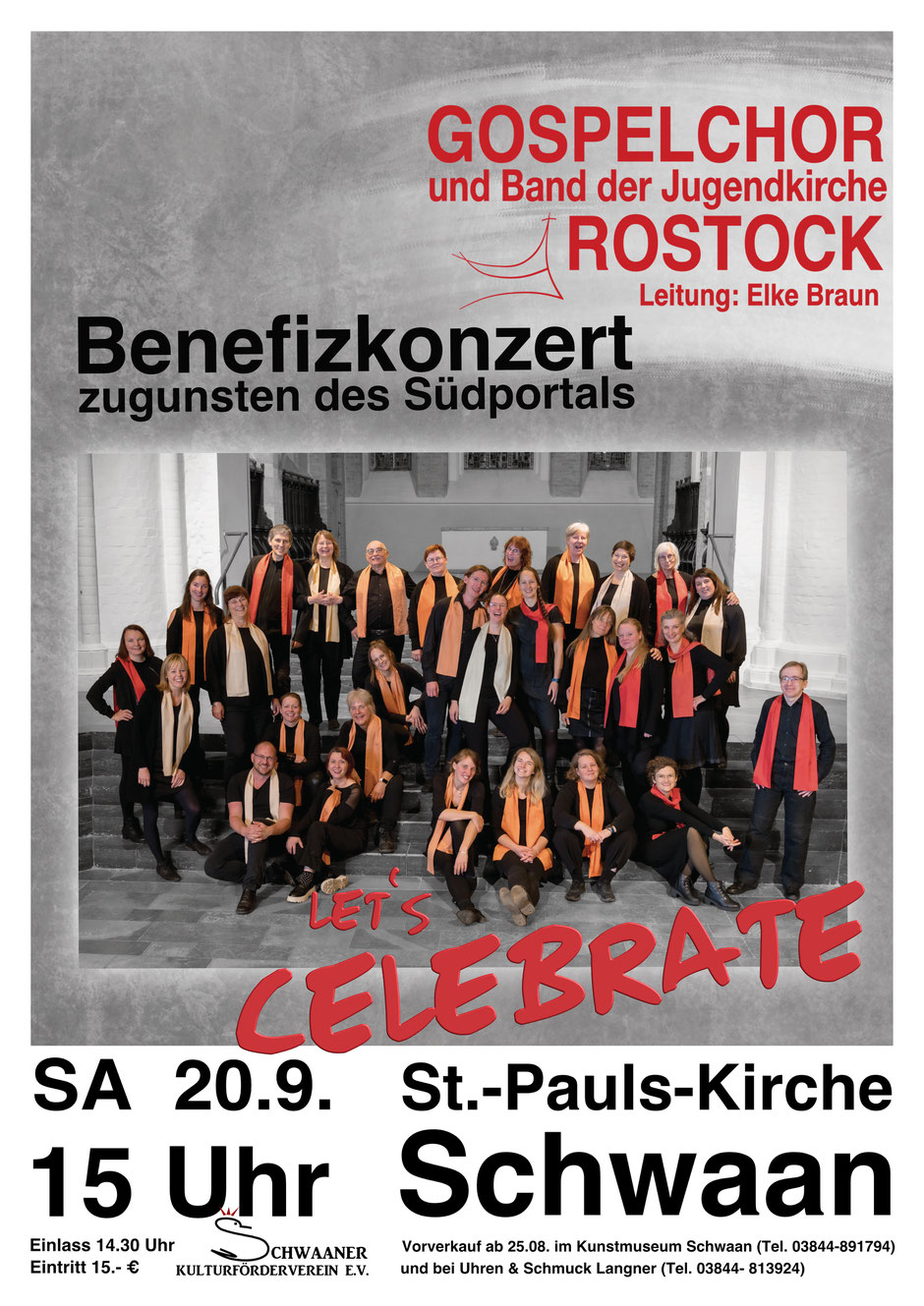 20.09. 15:00 Schwaan Ev. Kirche Benefizkonzert zugunsten des Südportals der St.-Pauls-Kirche / Tickets 15€ Einlass 14:30